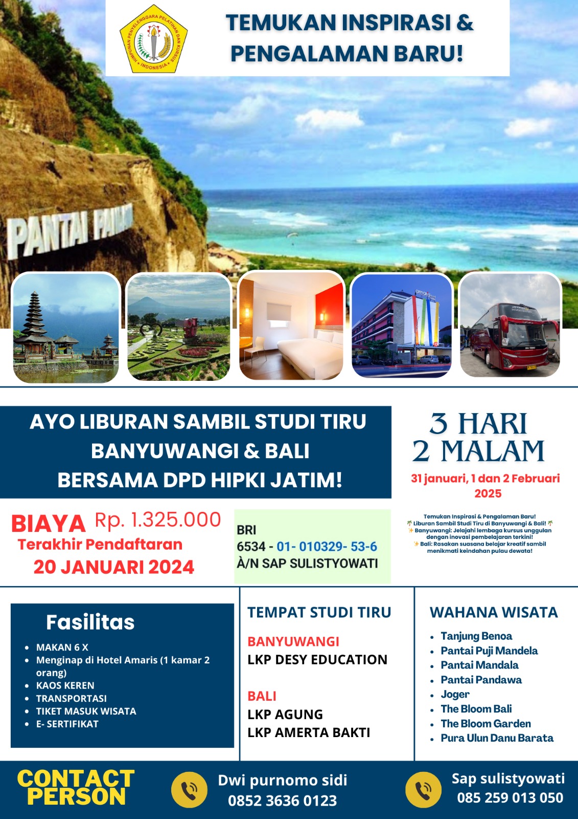 Kabar gembira bagi Anda para pemilik dan pengelola lembaga kursus di Jawa Timur! DPD HIPKI Jawa Timur mempersembahkan kesempatan emas…